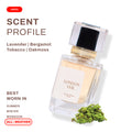 It opens with the comforting warmth of lavender, bergamot, and a dash of cinnamon, creating an inviting yet confident first impression. The heart unfolds into an opulent blend of mimosa, supple leather, and port wine, wrapping the senses in smooth luxury and understated sensuality.